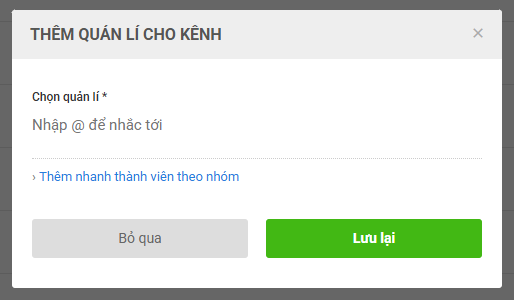1. Owner tự thêm mình, thêm thành viên làm quản trị 1 kênh