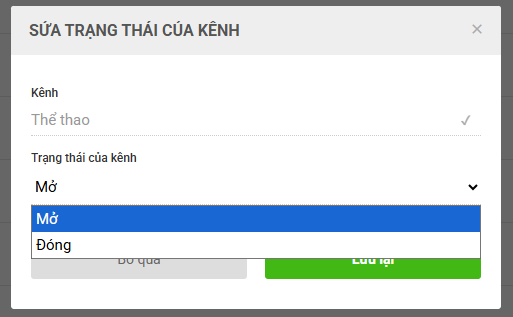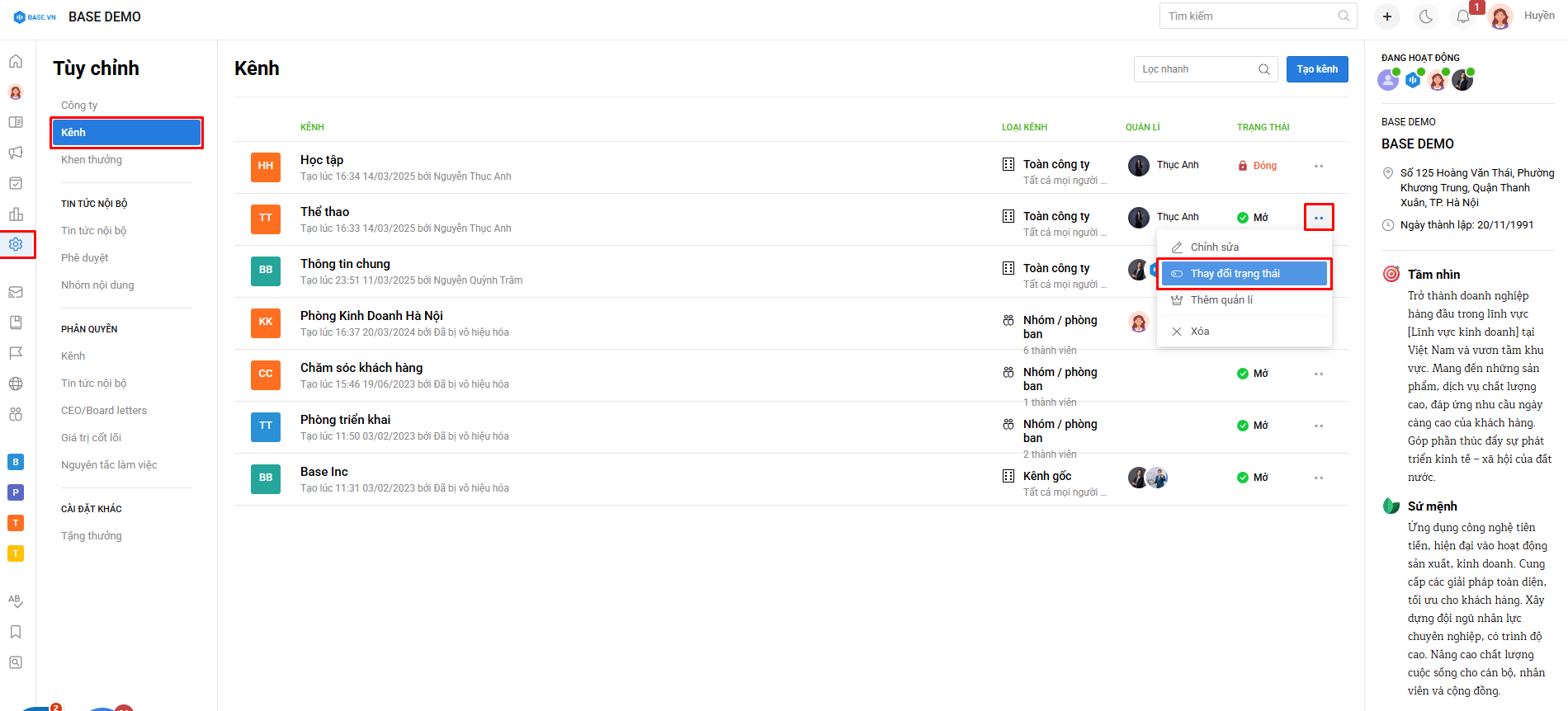 Bước 2: Chọn kênh cần quản lý >> Click icon 2 chấm >> Thay đổi trạng thái