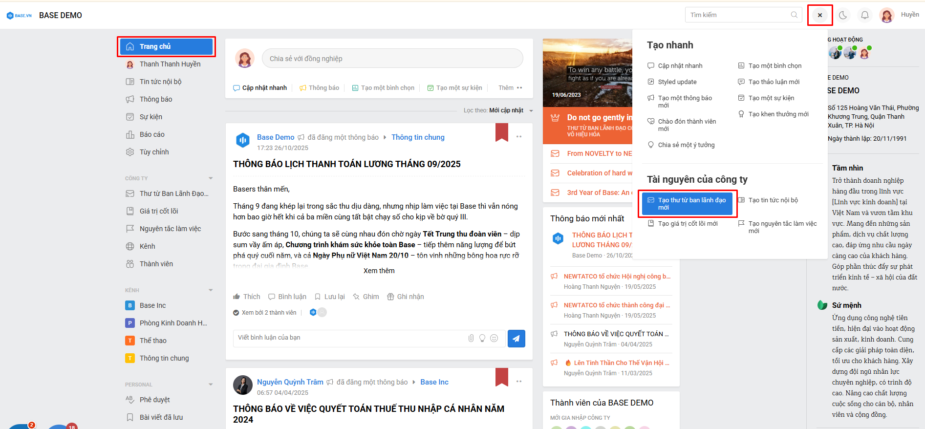 Base Inside: Cách tạo Thư từ ban lãnh đạo in