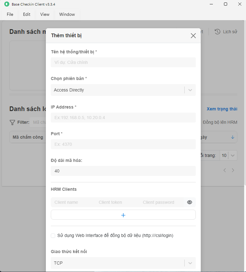 Base Checkin: Cách kết nối máy chấm công với Base Checkin Client in