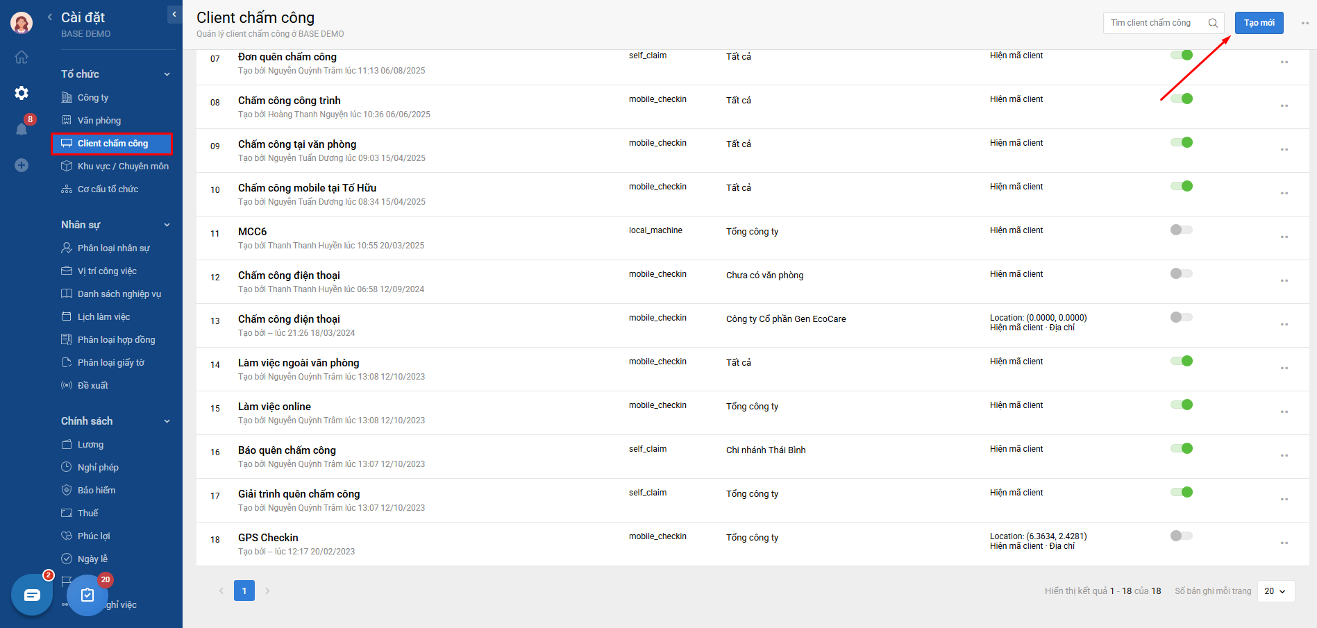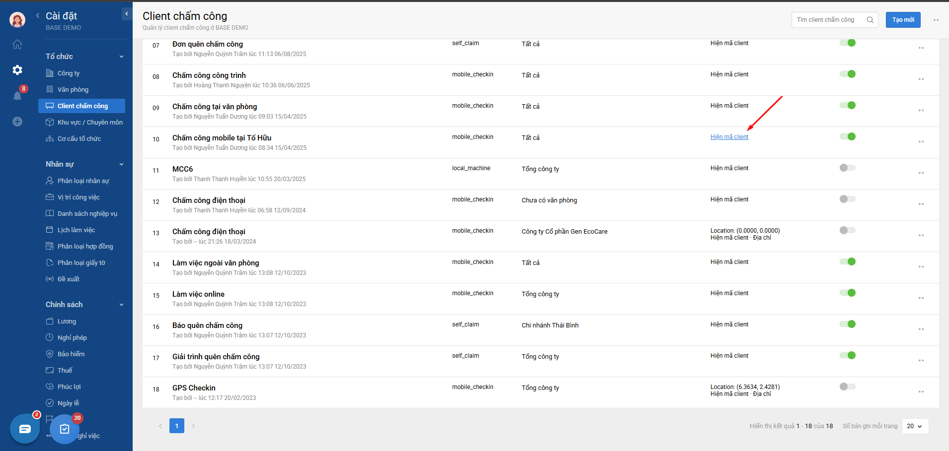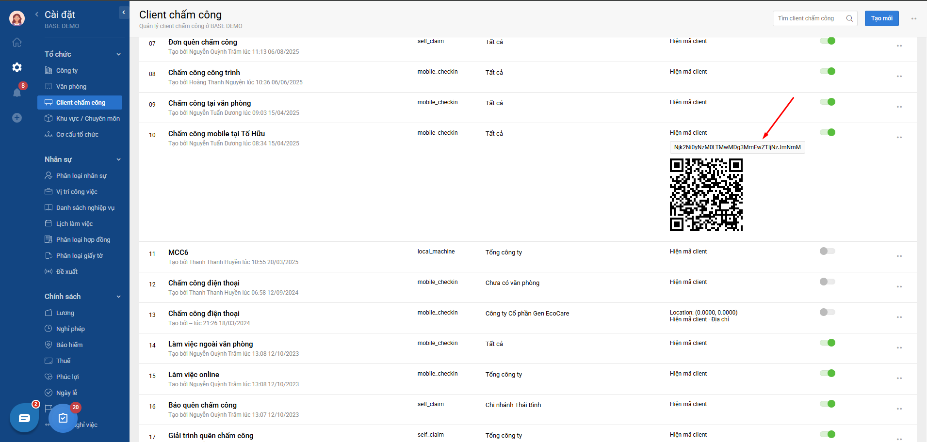 - HRM Clients: thao tác như Bước 4 để tạo trên Base HRM