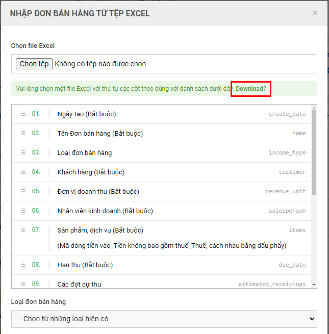 Base Income: Cách nhập Đơn bán hàng bằng file excel in