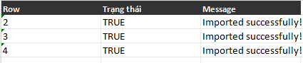 Nếu file nhập lên thành công, hệ thống sẽ trả ra file excel báo thành công như hình: