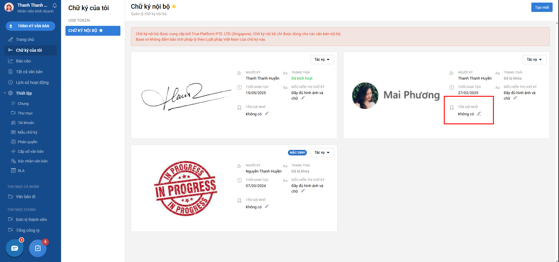 Để tạo chữ ký nội bộ, bạn truy cập vào Base Sign https://sign.base.vn/,