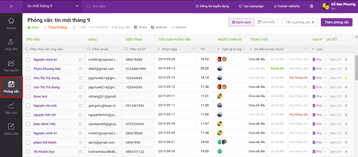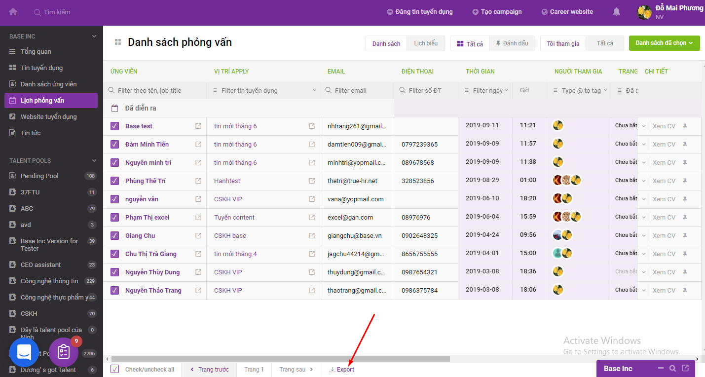 Step 3 : Select Export >> Select time period and click Start extracting to export the interview schedule list.