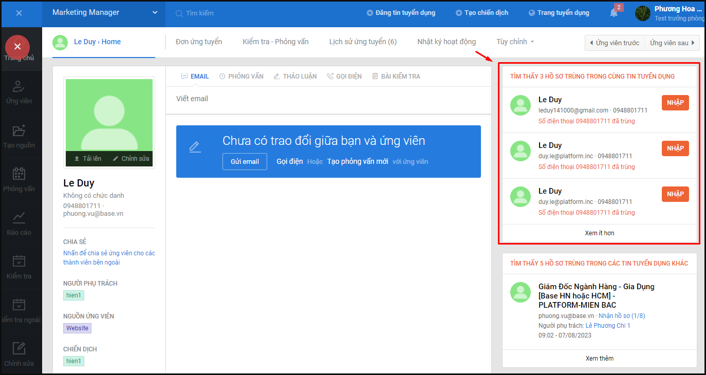 Base E-Hiring: How to check duplicate email/phone number profiles in