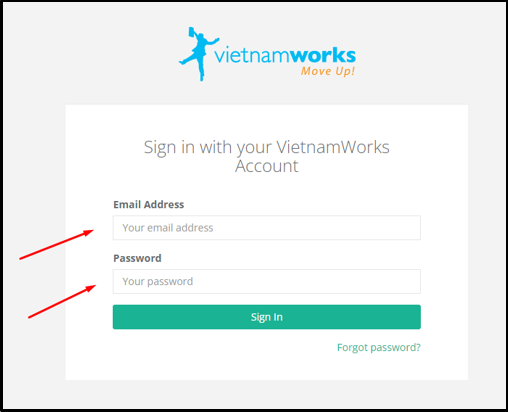 Step 2: After clicking Add access code , it will jump to the VietnamWorks login page. Users must log in to their recruitment email.