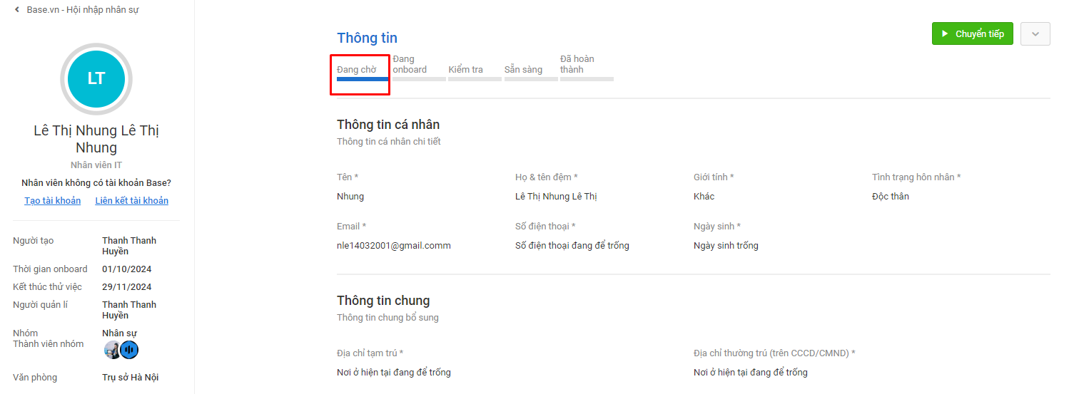 + After setting up the Onboard Link process in the "Hired" Step + candidates with a recruitment proposal in the "Approved" status and transferred to the "Hired" stage will automatically have a new personnel profile created in the Onboard process in the Pending status.