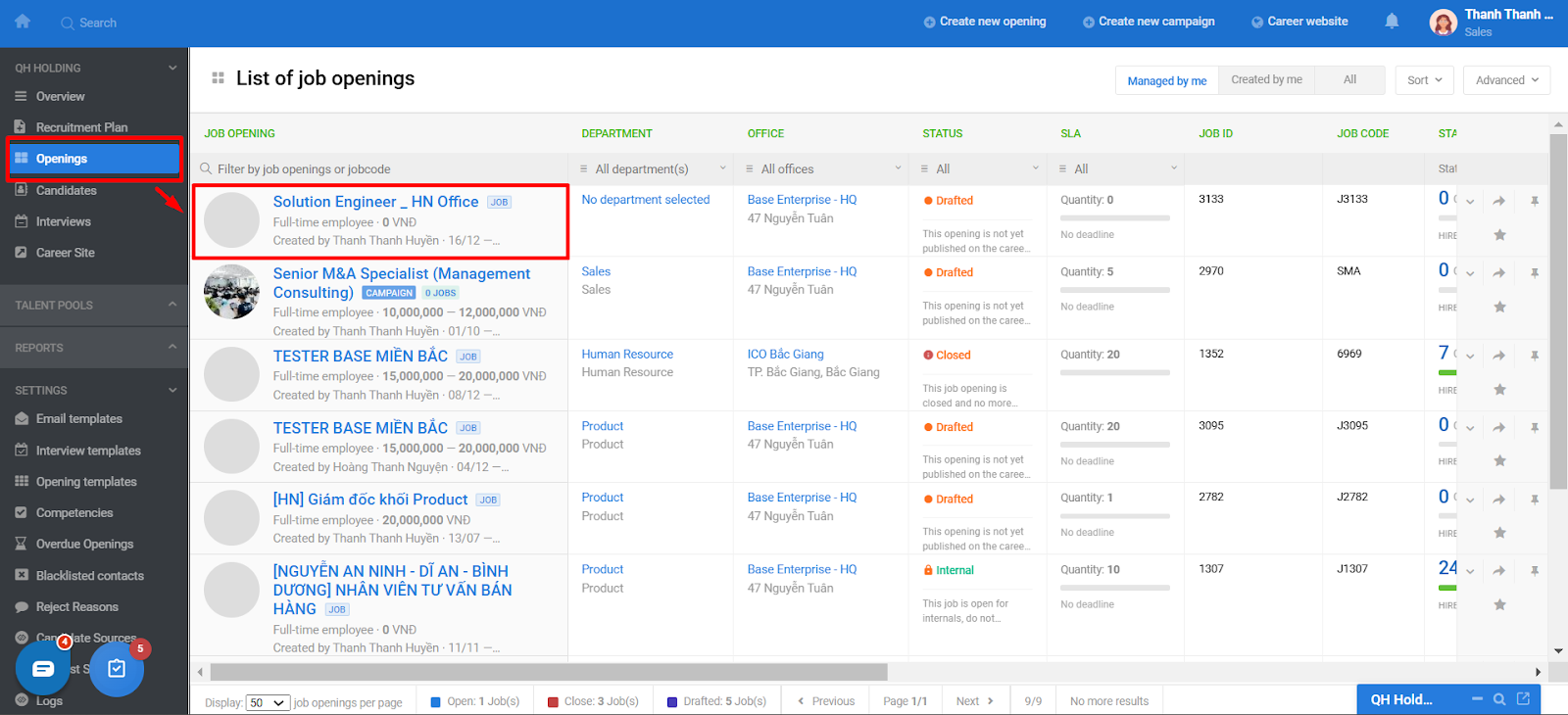 Choose Openings >> click on the job opening that needs to add interview questions