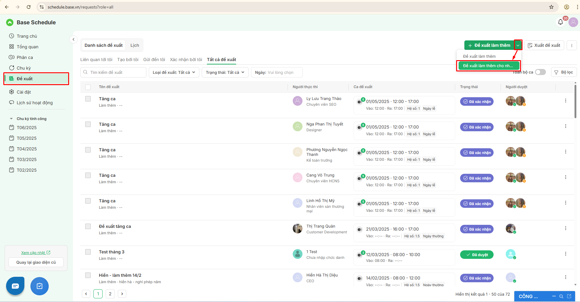 Schedule - Tạo đề xuất tăng ca cho nhân sự khác in