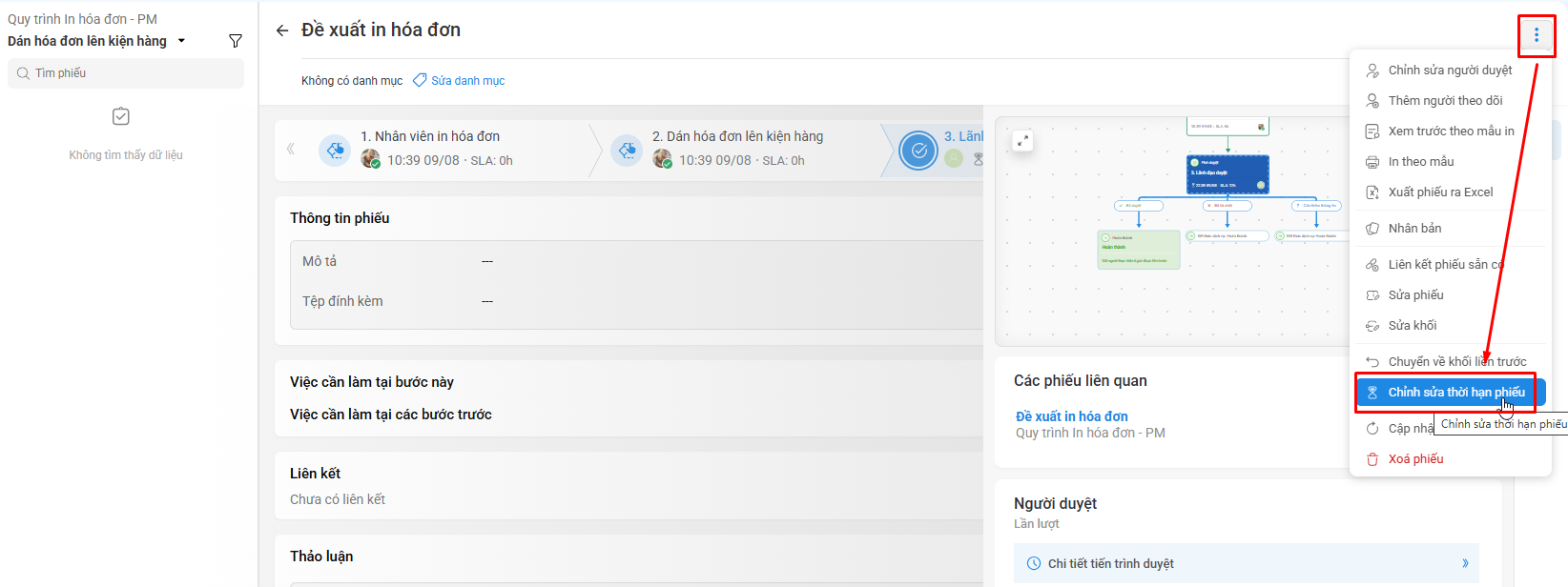 - Quản lý dịch vụ có quyền thay đổi thời hạn cho từng người duyệt trong chi tiết phiếu