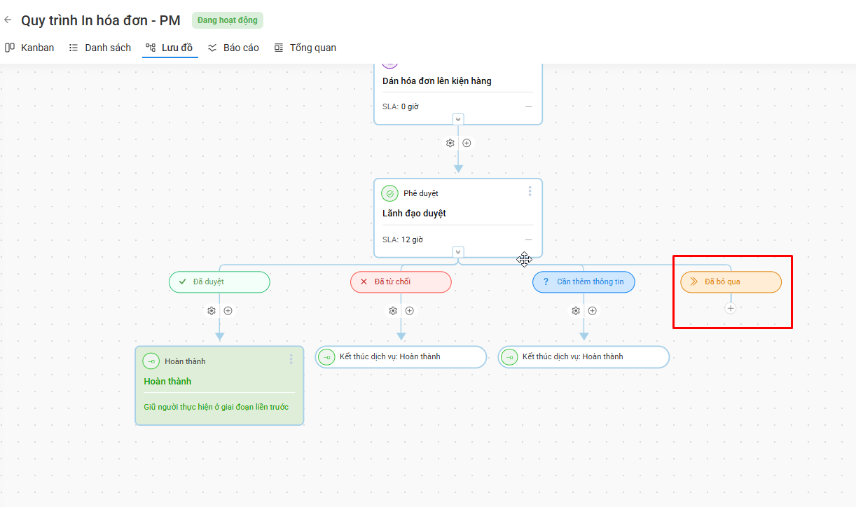 2. Tự động chuyển phiếu sang khối tiếp theo nếu quá SLA: Nếu bật tính năng này, hệ thống sẽ bỏ qua người duyệt nếu quá SLA của người duyệt trước