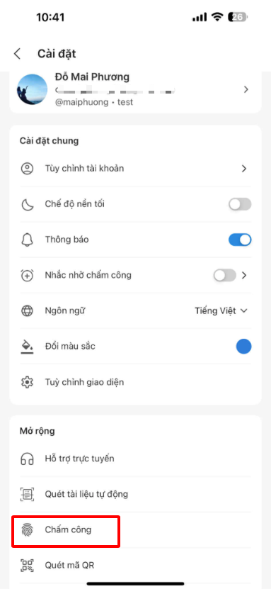 - Đảm bảo Face ID/Touch ID hoạt động bình thường trước khi chấm công