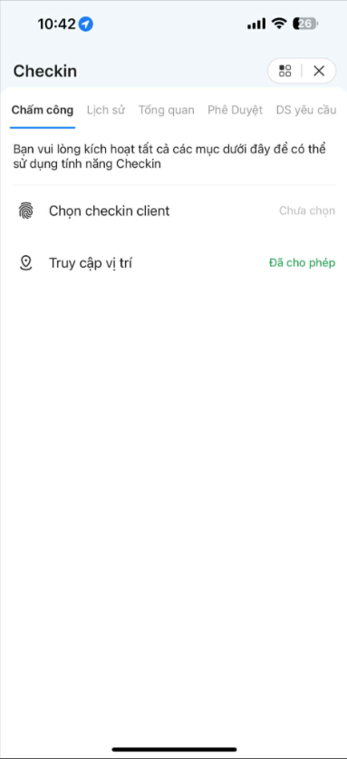 Lưu ý: Thiết bị của người dùng phải đăng ký sinh trắc học (Face ID/ Touch ID) trong cài đặt hệ thống của thiết bị đó. Nếu chưa đăng kí, chấm công sẽ thất bại.