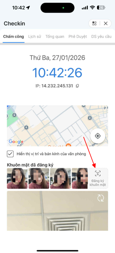 + Nếu không thành công, hệ thống sẽ báo lỗi ngay trên màn hình và dừng quy trình chấm công.