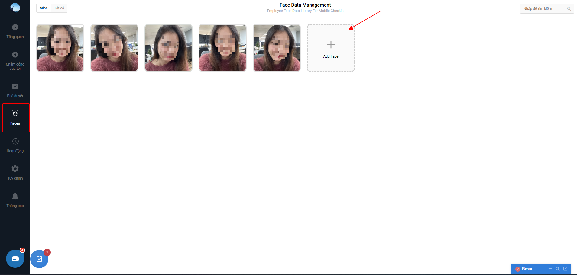 Với bản web, bạn vào Base Checkin >> Faces để upload ảnh
