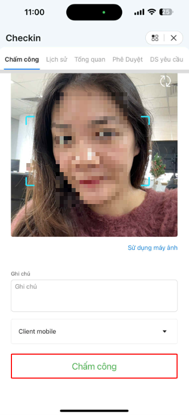 Bước 5: Bạn click vào Chấm công để bắt đầu thao tác chấm công.