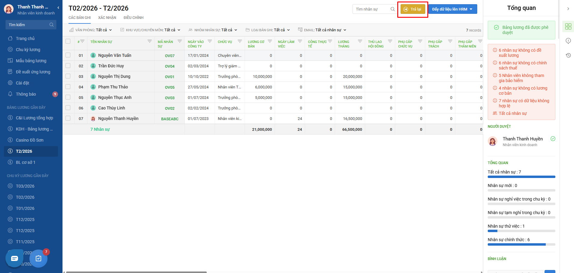 1. Cho phép quản trị cấp cao Trả lại bảng lương ở trạng thái Hoàn thành