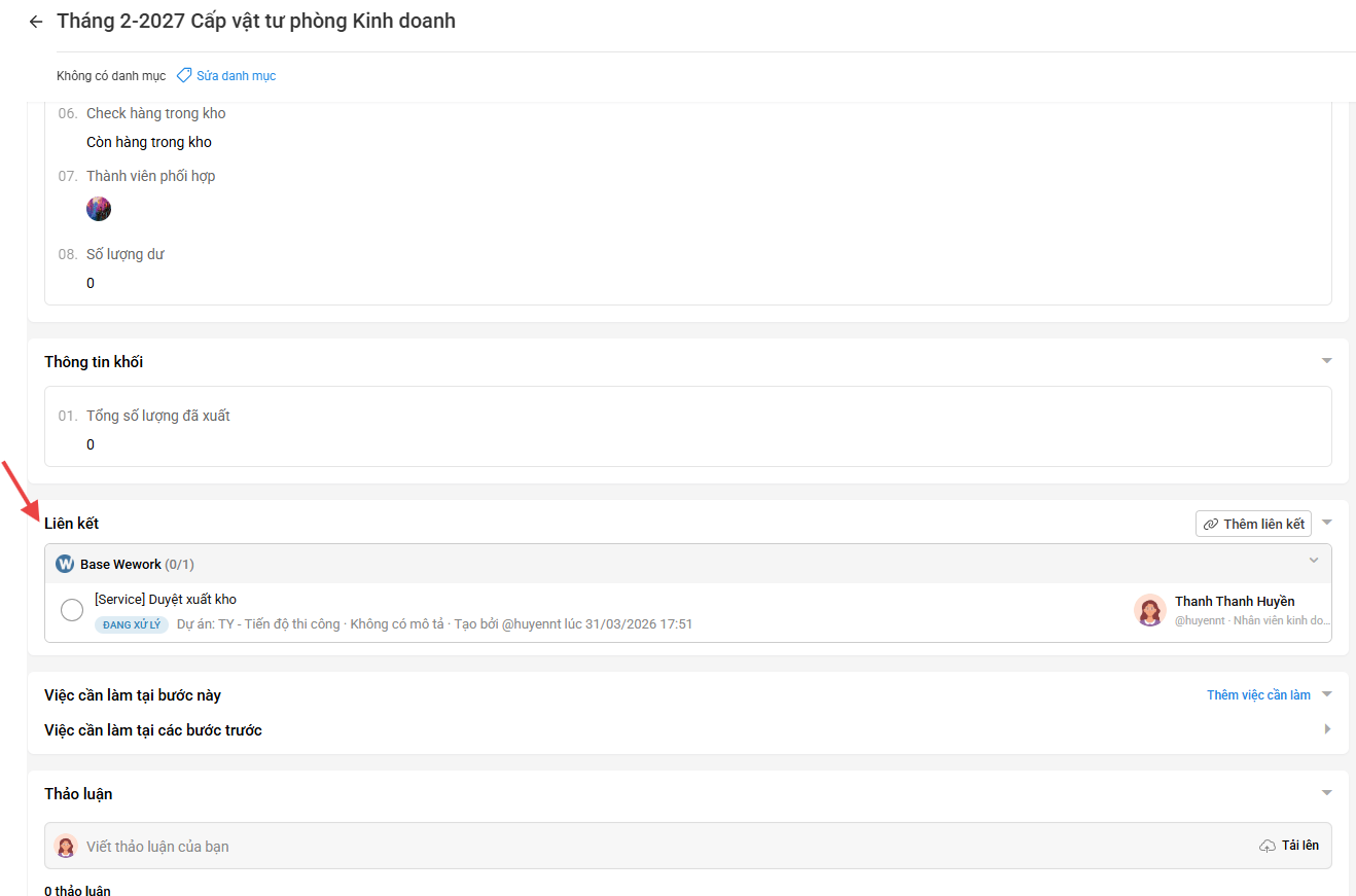 Để thêm liên kết cho phiếu trên Base Service, bạn truy cập vào đường dẫn
