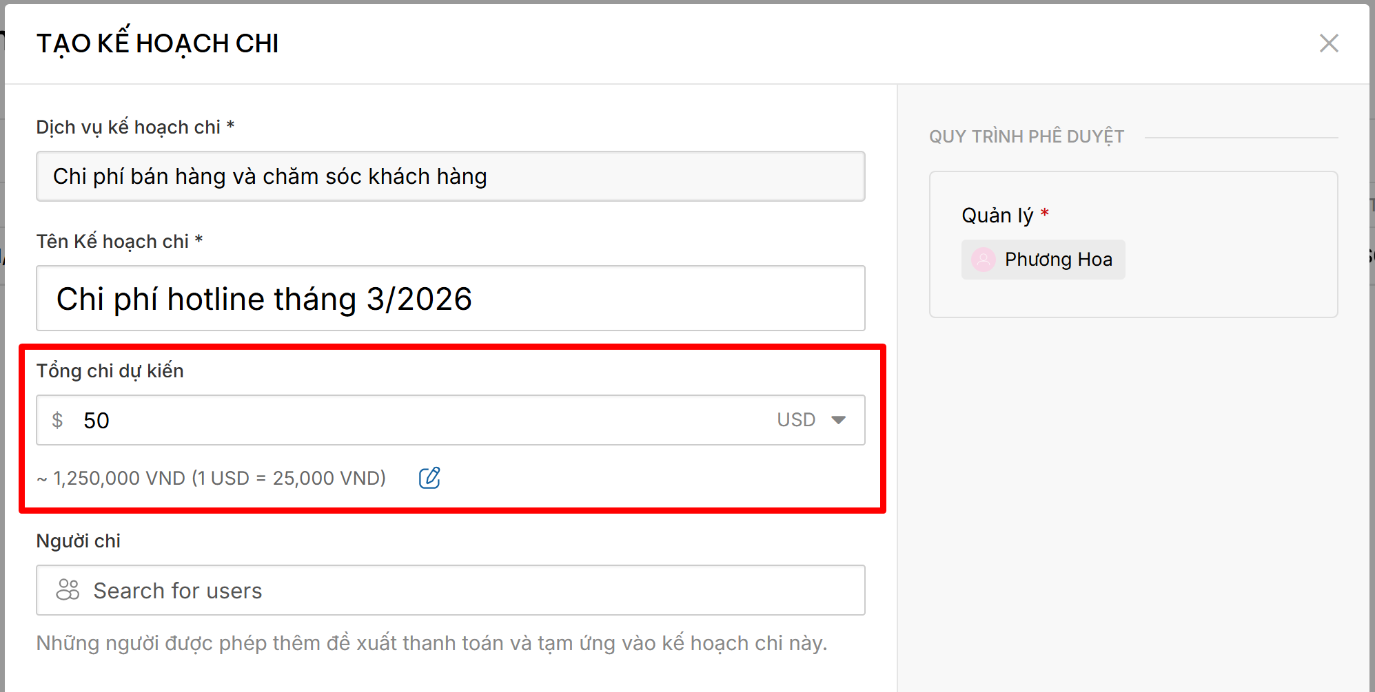 Mẹo nhỏ: Đối với các doanh nghiệp có phát sinh ngoại tệ thường xuyên, Admin nên định kỳ kiểm tra và cập nhật tỷ giá này trong phần hành động của từng loại tiền để đảm bảo số liệu quy đổi trên Kế hoạch chi (expense plan) và Đề xuất thanh toán (expense report) luôn sát với thực tế.