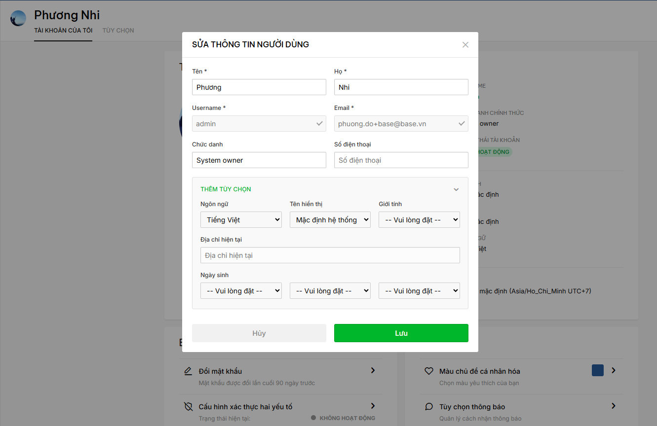 Bước 2: Bạn có thể chỉnh sửa các thông tin cá nhân tại đây.