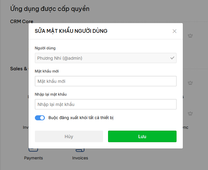 Trường hợp bạn có chọn đăng xuất khỏi tất cả thiết bị, hệ thống sẽ logout và chuyển sang màn đăng nhập, bạn nhập email và mật khẩu mới đổi để đăng nhập lại.
